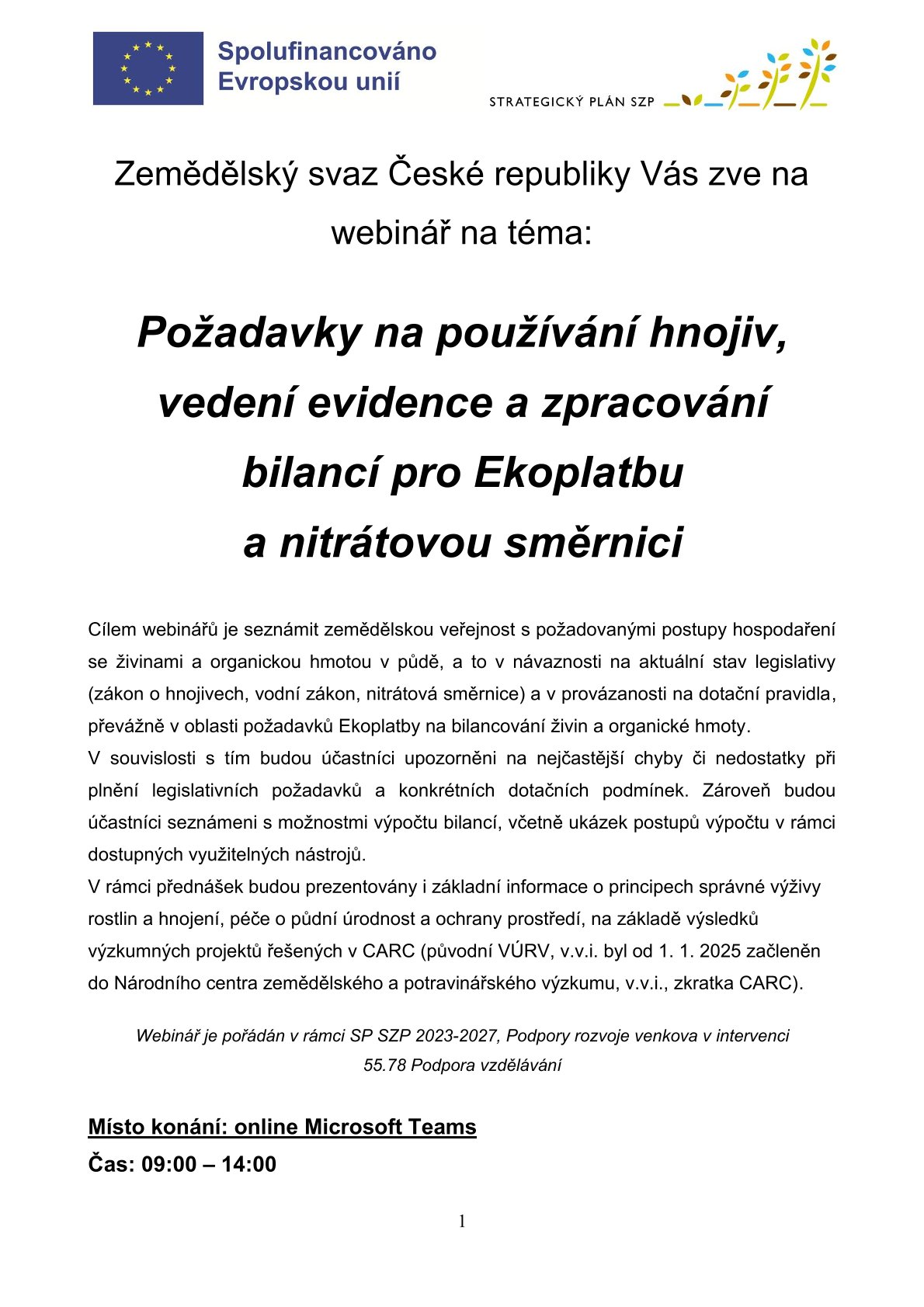 Požadavky na používání hnojiv, vedení evidence a zpracování bilancí pro Ekoplatbu a nitrátovou směrnici