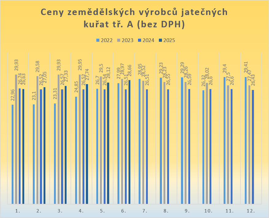 Ceny zemědělských výrobců jatečných kuřat třídy A (bez DPH)