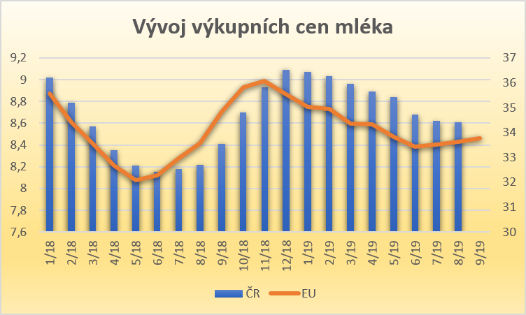V srpnu 2019 se od prvovýrobců nakupovalo kravské mléko třídy Q. za 8,60 Kč/l, což je o 0,09 Kč/l (1 %) méně než v červenci. V meziročním srovnání cena vzrostla, a to o 0,38 Kč/l (4,6 %) proti srpnu 2018. Průměrná cena zemědělských výrobců za rok 2018 byla 8,618 Kč/l, a to je nárůst proti ceně za rok 2017 o 0,18 Kč/l (2,2 %).