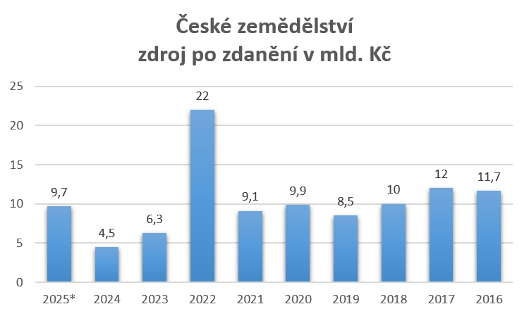 I přes více než dvojnásobný růst byl podle něj loňský zisk z dlouhodobého hlediska podprůměrný. Průměrný zisk zemědělských podniků činí od vstupu Česka do Evropské unie v roce 2004 do loňska 10,4 miliardy korun.